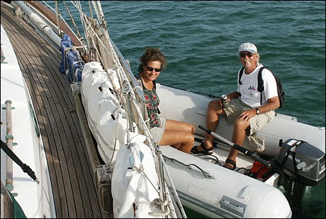 Over 20 years later, Kathy is still living aboard and sailing the Bahamas, Caribbean and US aboard Hale Kai, a Downeast 38 cutter with her partner Bill. While sailing the Caribbean, Kathy wrote two language guides which are widely used by blue-water cruisers Spanish for Cruisers and French for Cruisers. She also conducts Spanish for Cruisers classes at tiki huts, beachside picnic tables and now on the internet through Seven Seas U. Kathy lined up good friends Pam Wall and Gwen Hamlin to join her in giving “Women and Cruising” seminars at boat shows to answer questions women have about cruising. The 7-page handout that they give out to women at the seminars has grown into thisWomen and Cruising website. These days Kathy balances cruising with language teaching, managing the Women and Cruising website, giving seminars, traveling any and everywhere she can, and spending time with family and friends. Life is good. |