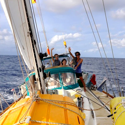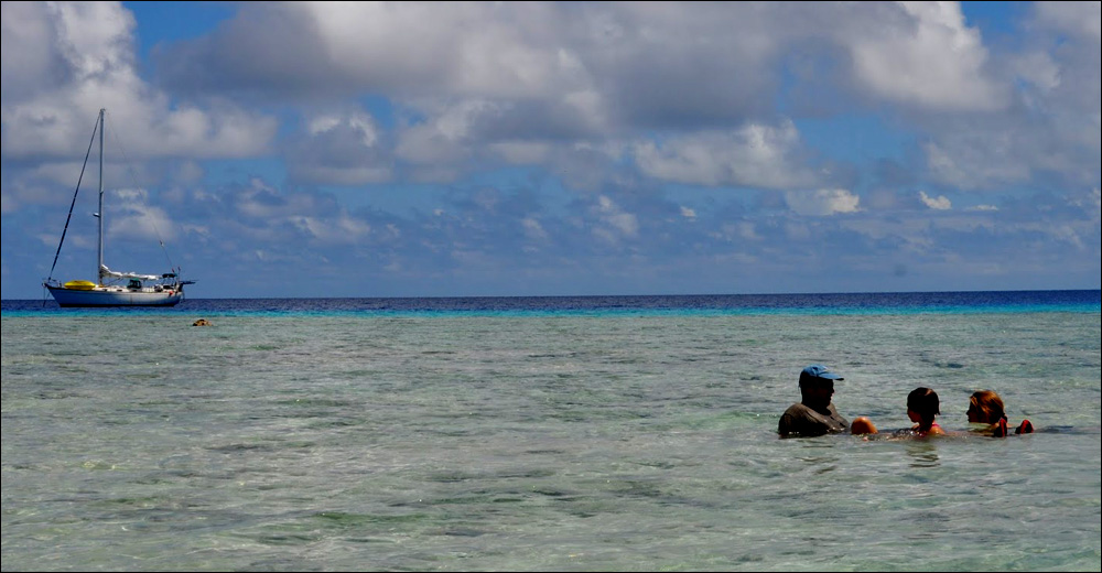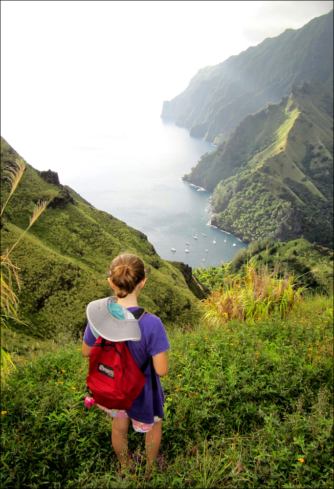 If we're anchored in a remote spot, we hike, read, eat, sleep, play, and work on the boat.