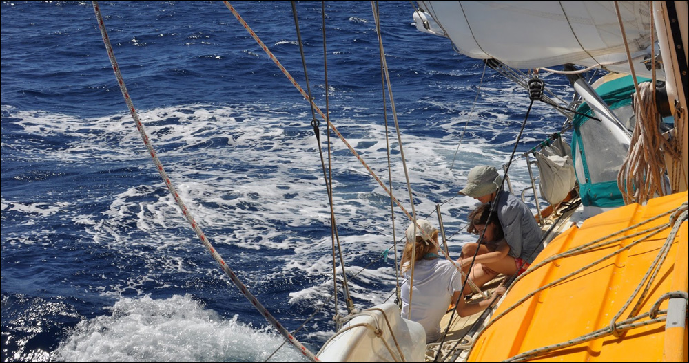 Nothing ever gets done on passage. The girls play or read. We read or tend to the boat. There is also cleaning and eating and sleeping.