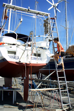 We sailed Shangri La, a 36-foot-long steel boat designed by David Devilliers, built in South Africa.
