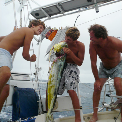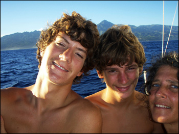 Together, the boys and I sailed from Curacao to Columbia, the San Blas Islands, Panama and the Panama Canal, across the Pacific to the Marquesas, to the Tuamotus, to Tahiti. With their father, they sailed from Tahiti to the Cook Islands, to Samoa, to Wallis, to Fiji and New Caledonia, where the trip ended.