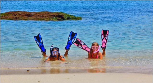 | Girls snorkeling at Jaltemba, Mexico |