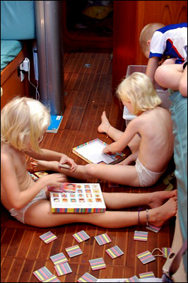 They don't need us to entertain them…I like to think of this as one of the false needs of modern families that we've left behind. Our kids have no trouble entertaining themselves; by the same token, we all have a good time playing together. Personal space aboard