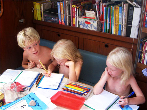 If conditions are benign, we find passages are a great time to pull out the books - counterpoint to the environmental learning that tends to happen in a new location. After two years, it is a joy to see them growing as articulate children of the world through our untraditional approach to learning afloat.