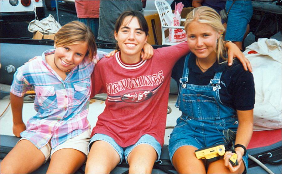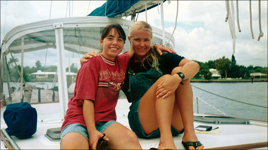 | Melanie, Carolyn and Michelle sitting on Michelle's dinghy at the Dania Flea Market in 1995 |