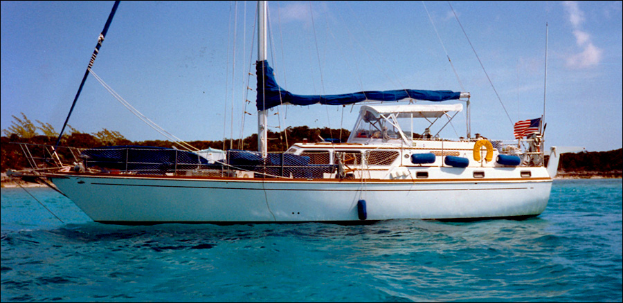 | Chez Nous at anchor in the Bahamas |