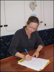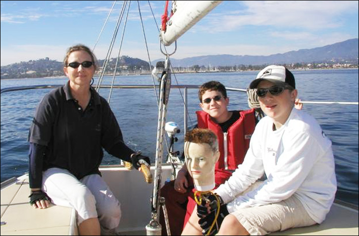 When I met my Australian husband in London he was looking for a houseboat and I knew he was a man after my own heart. We would walk along the Thames and gaze enviously at the homes tied up along the banks with their bikes and their boxes of geraniums. We had both sailed in Australia and the dream of living on and sailing in a boat took shape throughout our marriage. At first we contented ourselves with the model variety; Ken would build them and I would sew the sails. “Bluenose” took shape during the first pregnancy in the landlocked city of Denver a mile above sea-level. In Boston, however, our oldest boys, then aged 3 and 6, got their feet wet sailing a Drascombe Lugger with Ken to George's Island, where I joined them by ferry with our baby daughter. Then in California, when they were aged 10 and 13, I spent an incomparable 10 days with the boys completing two sailing courses in Santa Barbara. I followed this up with a number of community college classes in sailing, navigation (celestial, paper and electronic), marlinspike and weather. I also studied for my ESL certificate so I could teach English on our travels. All this time we looked at potential boats online and took turns traveling the country from Alaska to Texas and Maine to Miami, up and down California and across to Baltimore. I pored endlessly, obsessively, over cruising books and magazines. Finally, we found our boat. In England.