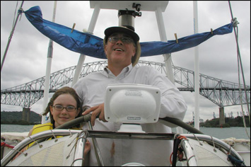 Our next challenge was how best to move on.Would we move us to her or move her to us? Our solution was a tag team approach. Ken started from England with a crew and was joined in the Canaries by our oldest boys, by now aged 12 and 15. They all sailed the Atlantic to Panama, where I joined them with our youngest two. Shedding crew along the way we made our way through the canal and up the coast to Ensenada, Mexico, where we left the boat in a yard.