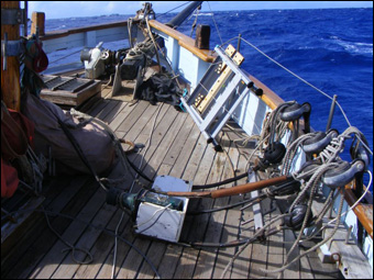 I was afraid. And I was right to be afraid. We were a crew of five, David, three friends and me. None of us had much experience, except David, and his lifetime of sailing with his family had been aboard modern yachts. Lista Light, a 35 tonne, seventy-five year old, gaff ketch, was to David's parents' last boat (a Hallberg Rassy), as a Welsh Cob is to a fine Arabian stallion in my world. Yet five months after leaving Devon we had reached the Atlantic, via north-west Scotland, the west coast of Island and Morocco. We were gaining our sailing stripes. However, halfway between Mauritania and the Caribbean, our amiable floating life dramatically changed.During the night the waves became confused and the wind increased. David and I were below deck trying to snatch some sleep, when one of our crewmates came down and hissed, ‘Dave, you need to come!' Dave sprang out of bed while I groggily reached for a coat. Suddenly, I heard a blood curdling scream, ‘Nooooooo!' I scrambled up on deck to see the main mast noodling like a length of spaghetti, before shearing half-way down and tumbling into the sea. Dave barked orders through the darkness, like a man possessed, and, in the pitching sea with waves crashing over the deck, we fought to save Lista. Half the mast hung at Lista's bows pinioned by rigging, threatening to punch a hole into her hull. With adrenalin pumping through our veins, we pulled in the waterlogged foresail and jib. Amber sparks lit Dave's torso as he worked an angle grinder slowly through the tangled rigging. I readied the dinghy in case we should have to abandon Lista forever, whispering prayers as tears streamed down my face. Then, suddenly, the mast was free, and we were left with a jagged stump and an empty deck. It was 3 o'clock in the morning. We sat in shock. The following morning illuminated the nightmare in full, the hideous vision of a desolate deck, void of the main mast and rigging. The beauty of Lista Light, however, is that she is a ketch. This meant that we could continue sailing and soon David was atop our new stubby main mast creating a jury rig. This allowed us to continue our voyage to the Caribbean and our seabird project (if a little odd looking) until we had time to make a new mast.