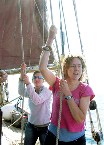 I braced my back against the icy wind that was battering my face. I was meant to be surveying for cirl buntings, but I could not tear my eye away from something else.... Far on the horizon, a boat was lurching in and out of view. For the past two years I had been surveying for wildlife and plants on these ancient, ruby-red, south Devon cliffs. Boats, just like this one, would have passed by, but I had not noticed them. They were of another world, far removed from my world of mossy woods and grasshopper filled pastures. Now, this boat, crashing through snarling waves, was a reality.In two months, my new husband David and I were to leave the safety of land and head for the vast, watery, reaches of our planet.