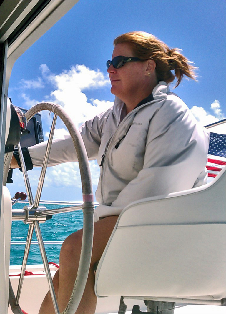 At the helm of S/V MORE JOY EVERYWHERE