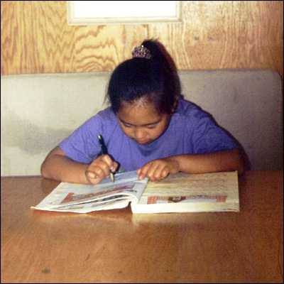 Kenna does school work