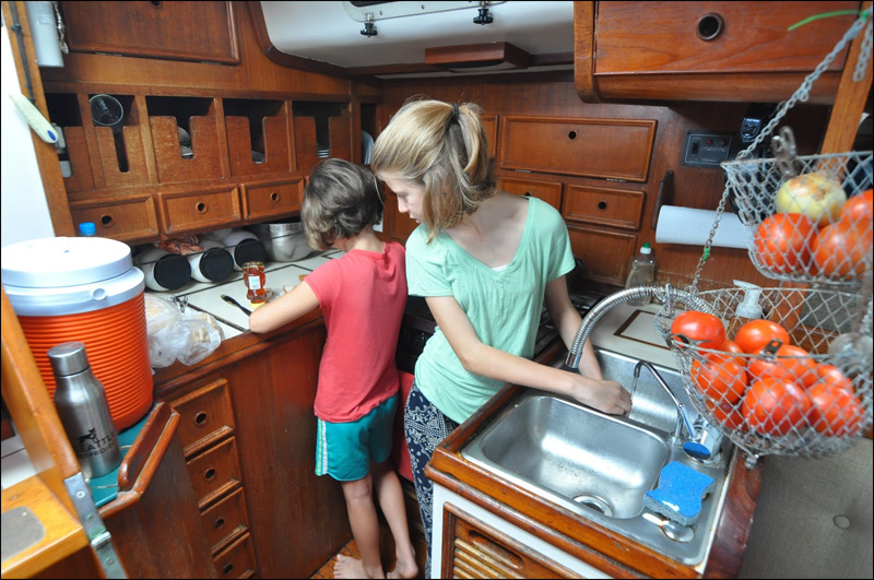 Our 12-year-old has chores, just like land kids. She does the dishes.