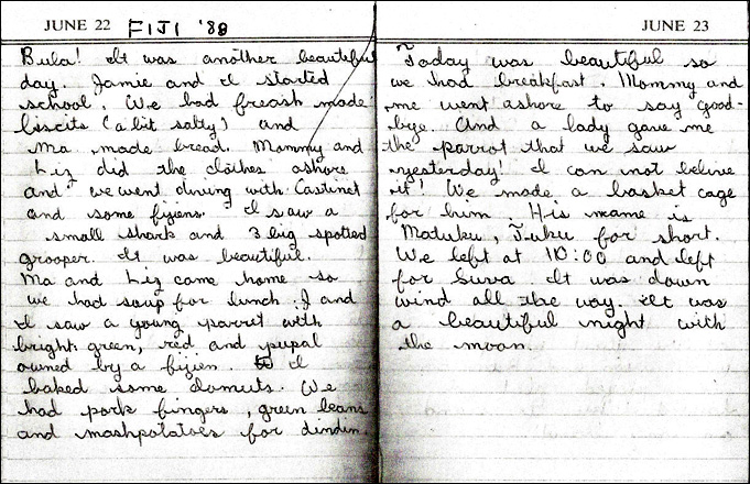 By this time, no teacher was necessary, so I was let off the hook. They were strictly on their own to do their required work and looked forward to receiving their grades by mail in the next port! I no longer needed to discipline the time or frequency of schooling; they did that all on their own as they loved it so much. That, I think, is a real credit to the type of education that Australia offers its students who are too far from any regular classroom.