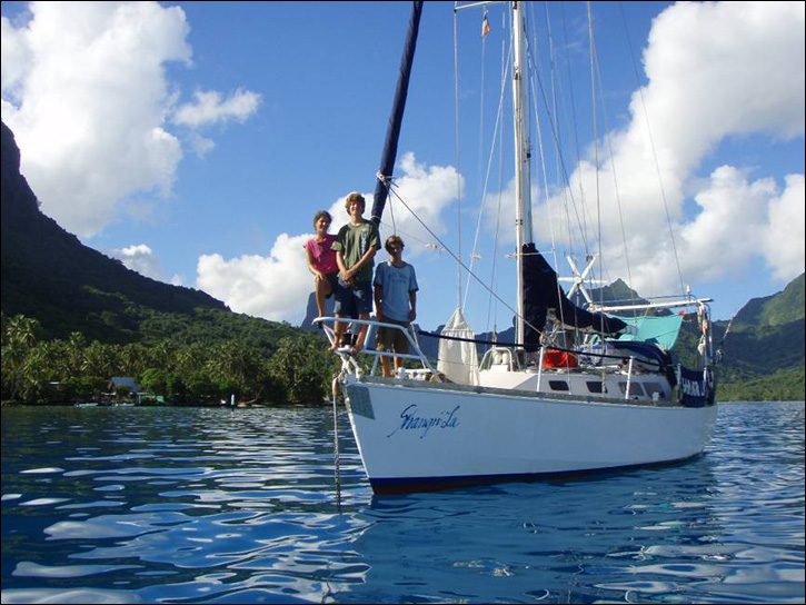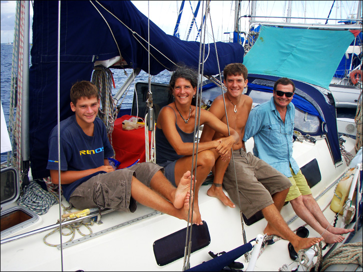 | Tania, Olivier, and the boys, in Tahiti, ready for the hand-off. |