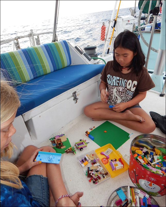 | Playing with Legos in the cockpit during a smooth passage |